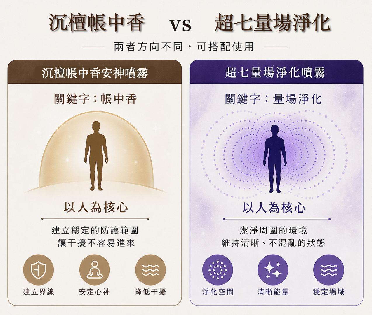 沉檀帳中香安神噴霧 與 超七量場淨化噴霧 的差別