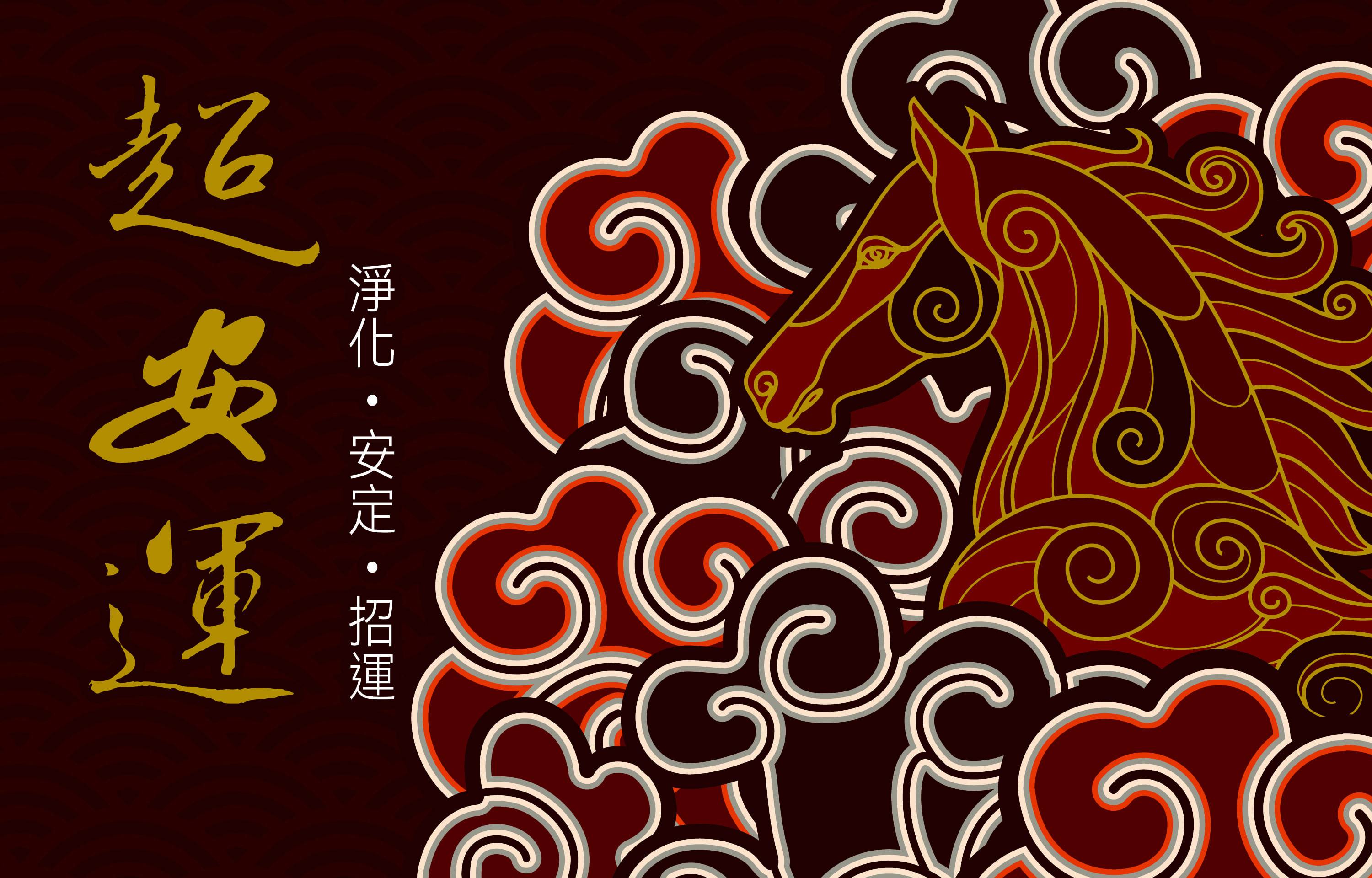 馬,象徵行動、奔馳與向前;翻湧的雲氣與火色線條,則呼應火運流動、能量推進的狀態。