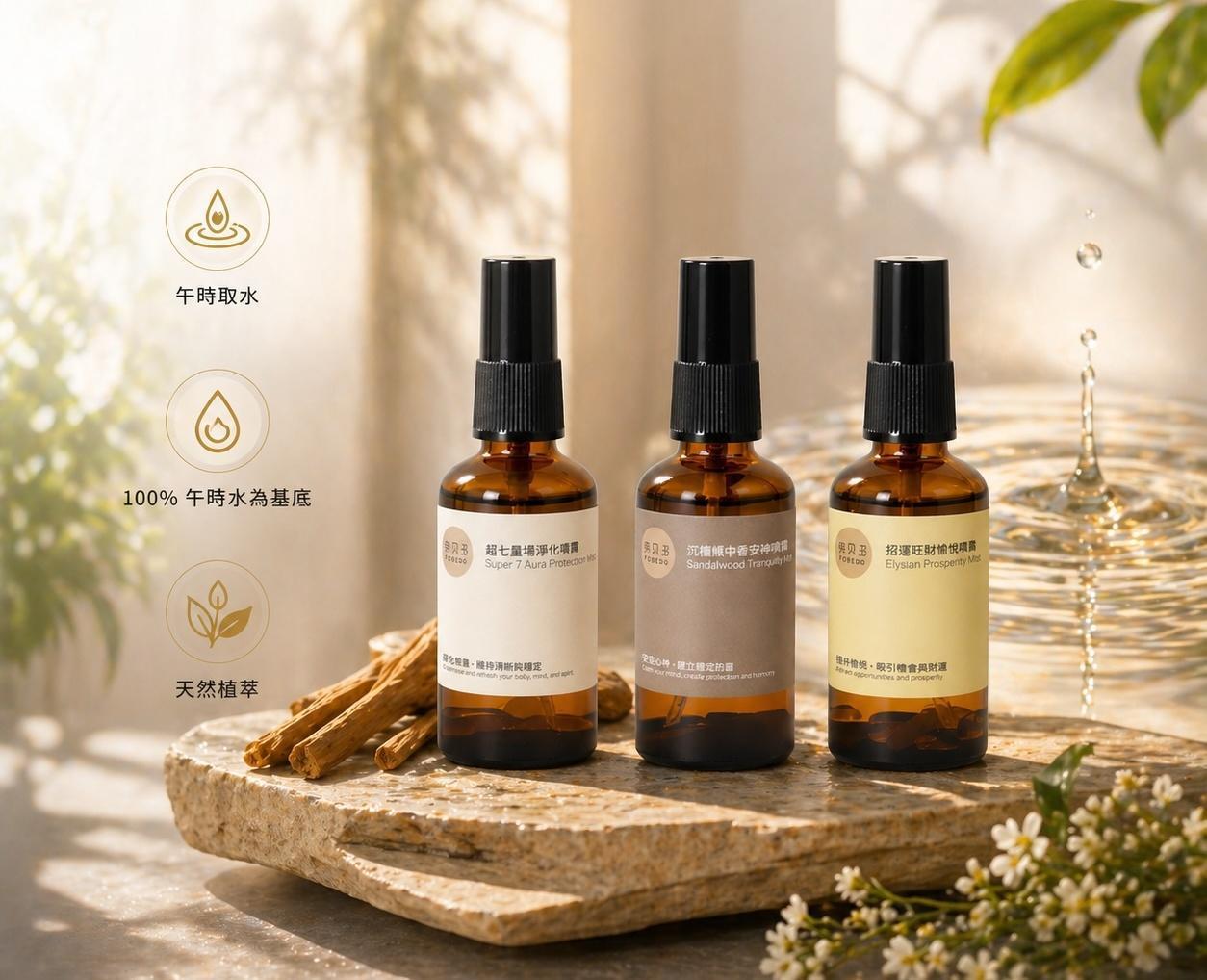 市面上主打能量概念的噴霧並不少見,但真正以午時水為核心,且全程不摻其他純水作為基底的產品,並不多。