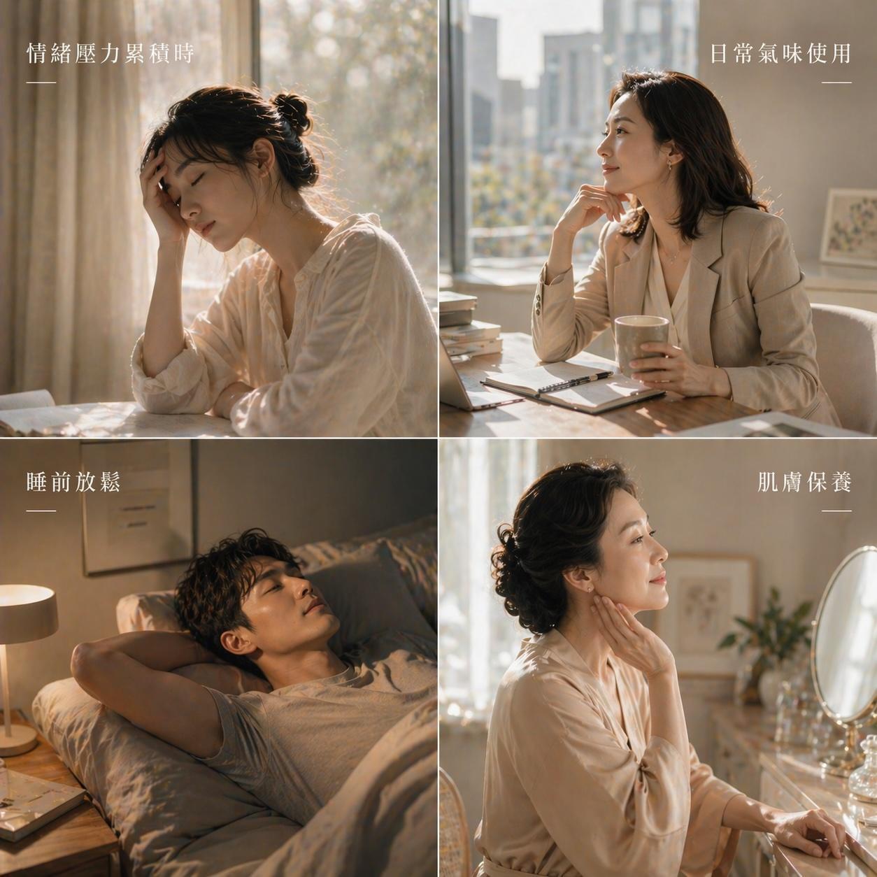 在安靜的空間裡,或睡前的時刻,讓氣味慢慢展開,使整體狀態回到舒適與穩定之中。