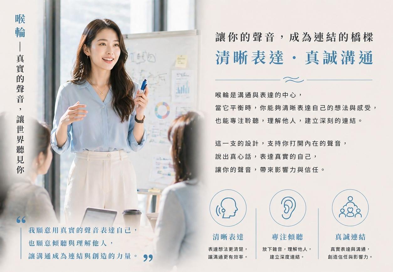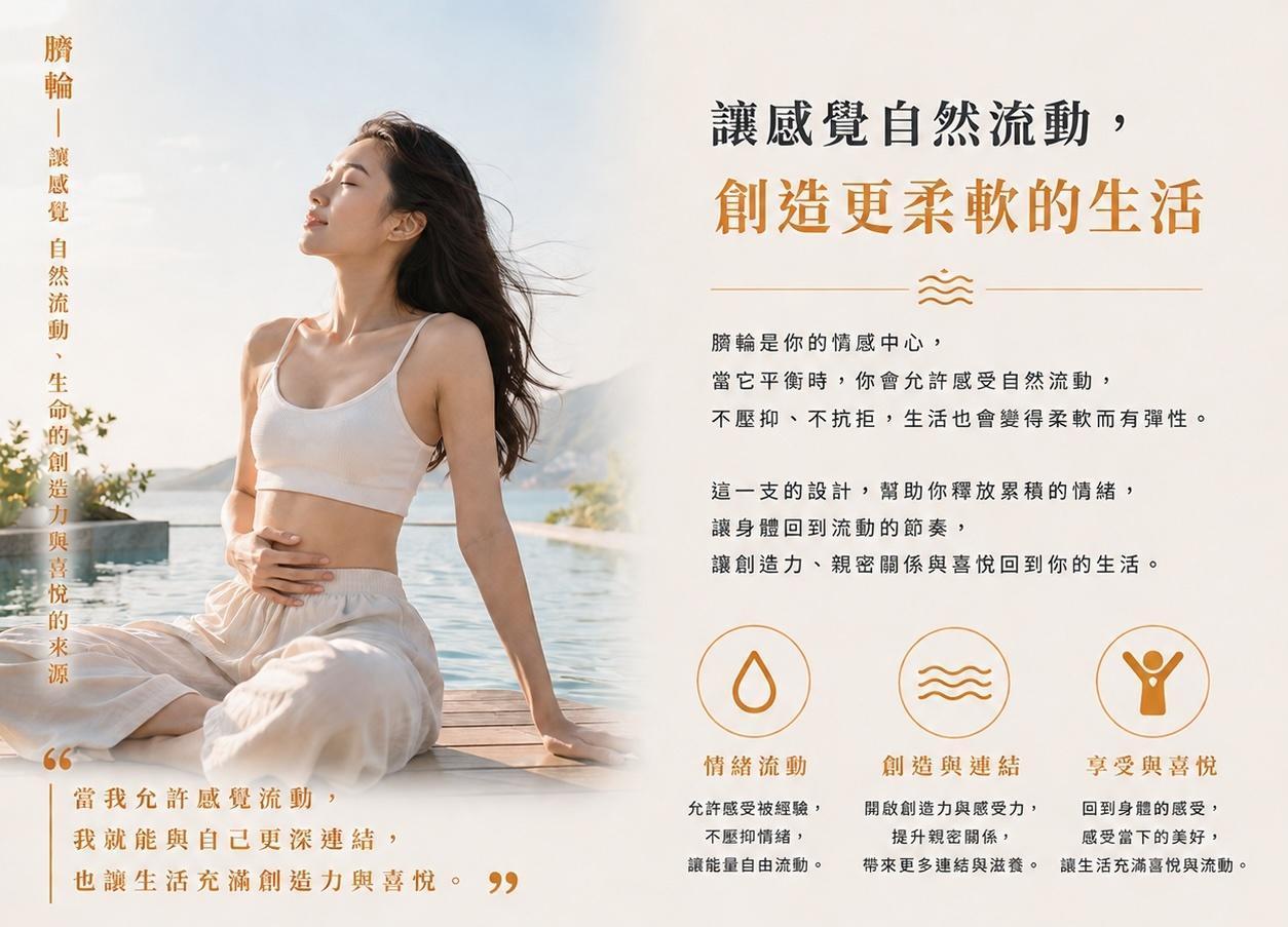 這一支的設計,處理的是更前面的階段:那些長期壓抑的情緒、卡在胸口與喉嚨的感覺,先被看見、被放鬆,通道打開之後,釋放才會出現,讓表達更自然,不會是勉強去溝通。