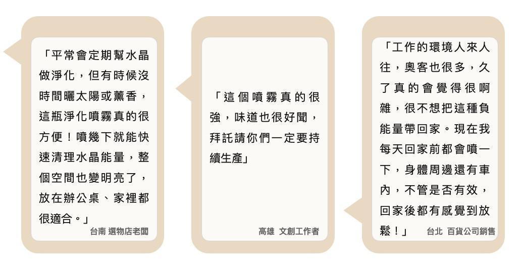 噴灑少量於水晶、辦公桌、車內或其他物品上,迅速淨化其能量場,