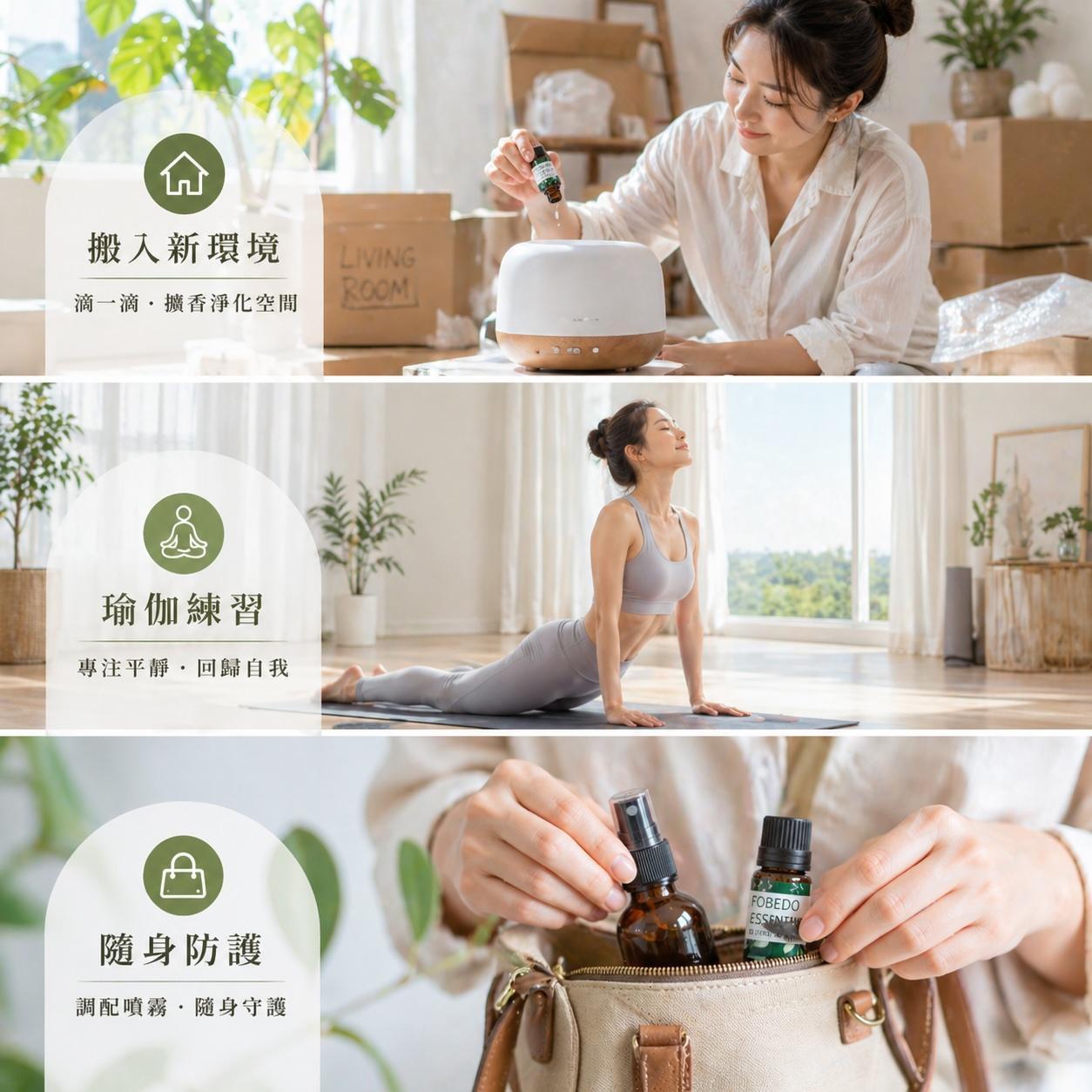 可在清晨獨處或瑜珈練習時,滴入 1 滴於掌心搓熱嗅吸,讓其獨特的植物靈性引領思緒進入深層定境,回歸自我,陪伴您啟動充滿能量的一天。